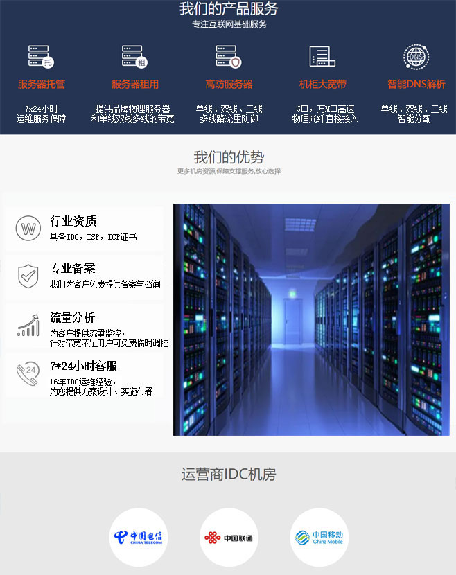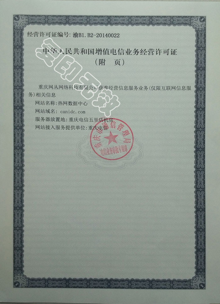 重庆电信服务器托管租用位于重庆市江北区五里店,于2004年12月建成投入投入使用,机房内采用Cisco的网络设备。机房总出口带宽达240G;机房内采用独立的UPS供电,保证7×24不间断供电;空调系统也为独立运行,保证室内恒温在摄氏25度以下。